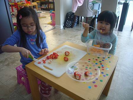 宇昕吵著要吃草莓,只好端出哈密瓜給她,不然果醬材料就要被吃光了