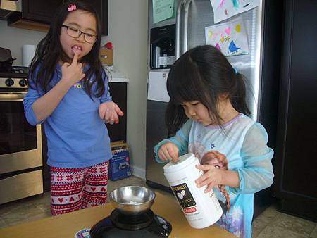 測量需要加入的糖粉重量,當然不會忘記試吃糖粉
