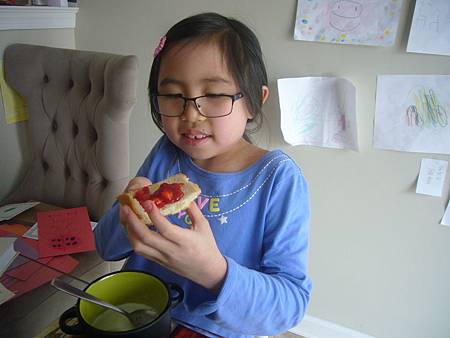 書扉吃完果醬冰淇淋後,試吃一口果醬吐司
