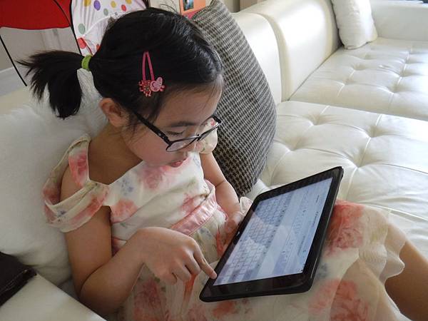 當初會開始努力教孩子中文其實是發現書扉上學後中文聽說能力不斷流失,上學前我們家中都用中文,但她看的卡通則是英文,所以英文雖然聽得懂,但不太會說,中文則是日常生活對話全沒問題。幼稚園上半天(9~12),她開始在中文句裡參英文,因爲學校內做的事很多她不知如何用中文說,我們想說她得適應英文環境,也常陪她用英文,但因為媽媽英文不夠好,多半還是用中文告訴她事情,她則常用英文回答,同時她也開始學會英文閱讀,可以自己看英文童書。一年級後上整天(9~3.5),她越來越熟練英文,英文閱讀能力也進步,然而日常生活開始偏好使用英文,甚至常說聽不懂媽媽的一些中文詞彙,英文不夠好的我有時無法和她好好講清楚事情,也深深體會語言環境的影響力,如果才一年級中文就開始消失,這時書扉在家大約用一半英文一半中文和我溝通,別說期望長大後還能用中文對話,大概再一年可能就不再用中文了。如果要留住中文力,我得加緊腳步才行。於是我開始試著用遊戲方式教她認字,我們玩中文字配對卡,把字卡搭配在家家酒遊戲,自製簡易中文桌遊,我不想過度強迫她讓她對學習中文心生反感,所以我沒有強迫她絕對只能使用中文,但是我在家幾乎全用中文,除非有時必須確認她了解某些事時加入部份英文,也許體貼的書扉知道媽媽無法流暢使用英文,她也試著盡量和我說中文,除非她真的不知道該怎麼說。我開始努力從台灣搬有趣的中文書和卡通DVD,盡可能讓孩子在家時接觸更多的中文,無論是聽說讀。書扉學中文的一些細節我之前已經分享了好些篇文章,包括字卡遊戲 (請參考學習中文的字卡遊戲和自製桌遊學中文兩篇文章)、唱歌學注音、寫日記等,這篇最主要想紀錄一下書扉嘗試中文打字所遇到的困難。